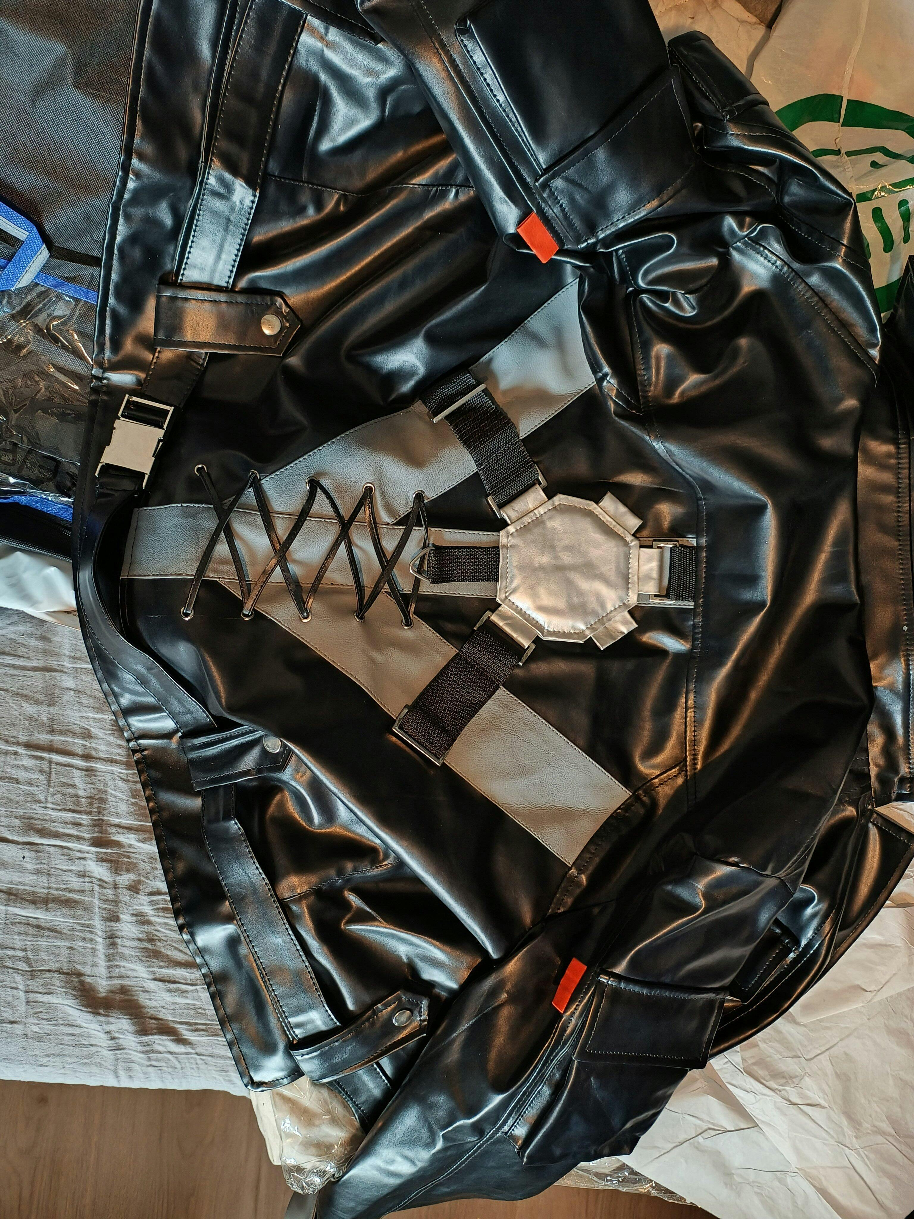 I ordered this jacket without seeing any pictures of it. Took the gamble, and I didnt come out massively disappointed. The quality was good and it fit me well. However, the material choice and details were somewhat lacking. For example: the metal plate on the back was made of grey colored fake leather. It also didnt feature any design on it as in game. The grey streaks across the back were simple grey stitched on and did not feature any design. Also the flame on the front is missing.